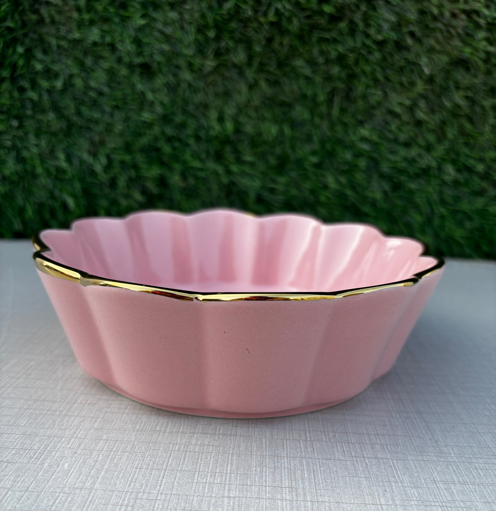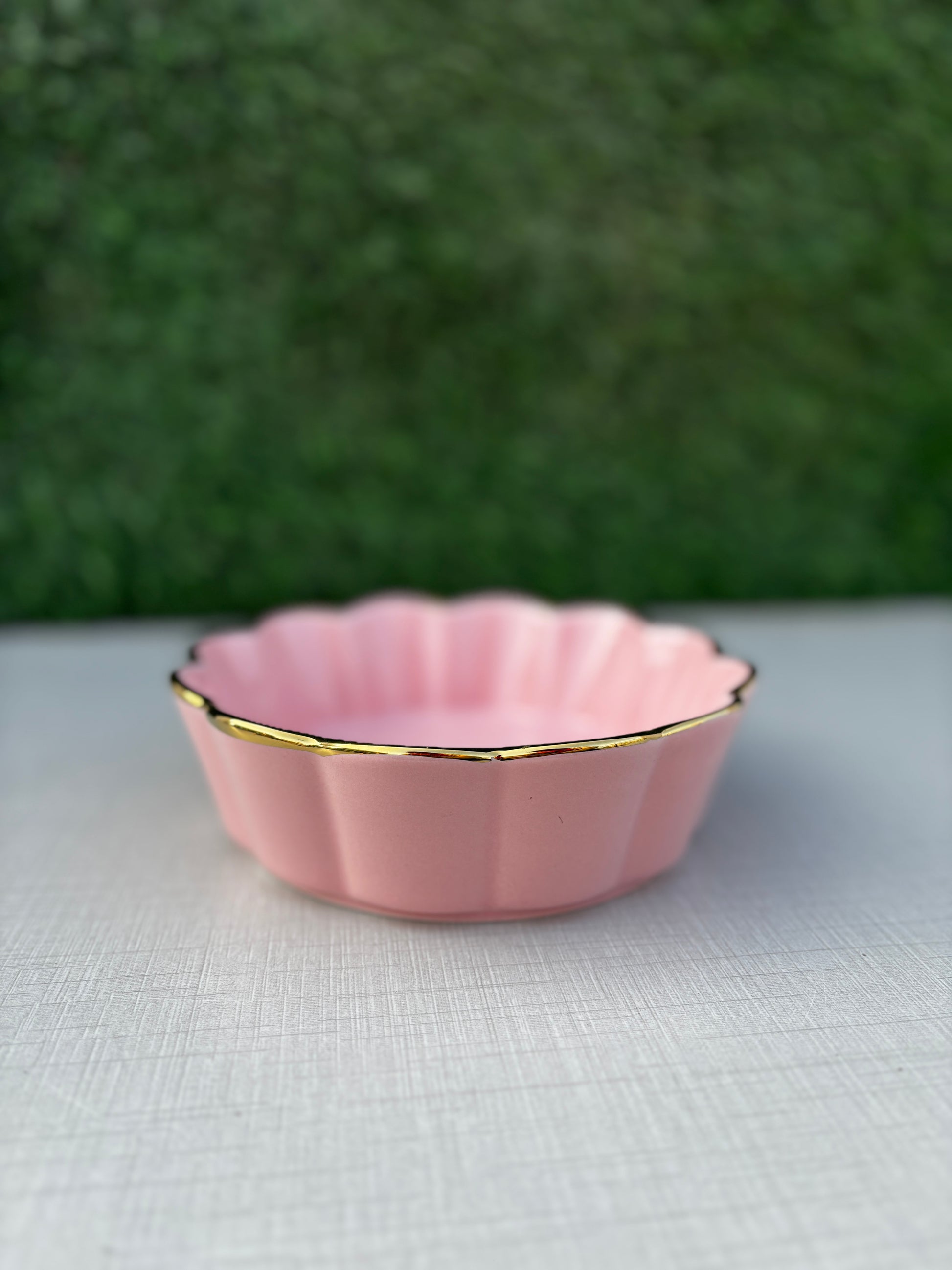 Grace your table with the soft charm of the Pink Petal Luxe Platter. Designed in a soothing blush pink tone with a sculpted petal-inspired silhouette, this platter is beautifully finished with a delicate gold rim for a touch of elegance. Perfect for serving desserts, snacks, or celebratory treats, it brings a refined, modern aesthetic to both everyday dining and special occasions. Subtle, stylish, and timeless, it’s a statement piece for elegant hosting.